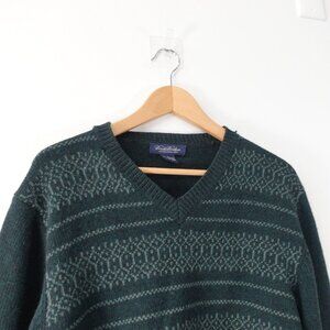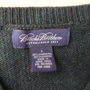 VINTAGE Brooks Brothers Sweater Large Green Lambswool V Neck Cashmere Nordic 90s