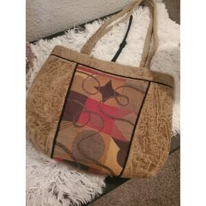 90s VINTAGE L. O'Neill Design Boho Textile Tapestry Shoulder Tote Bag MULTICOLOR