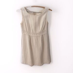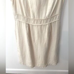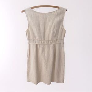 90s VINTAGE Linen Shift Dress 12 Sleeveless Pinstripe Preppy Cottagecore Office