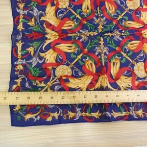 90s VTG CELINE Paris Handkerchief Blue Gold Medallion Arabesque AUTH Luxe 17x18