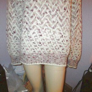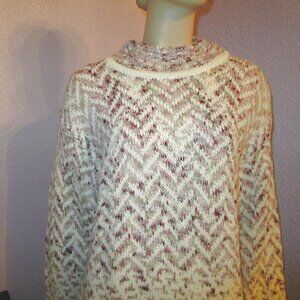 90s VTG Carriage Court Wool Blend Sweater Size M Mock Neck Chevron Fuzzy Knit