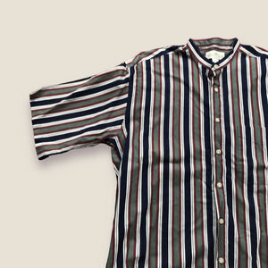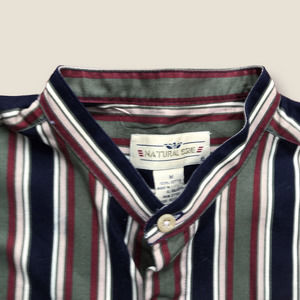90s VTG Natural Issue Vertical Striped Preppy Mandarin Collar Button Down Medium