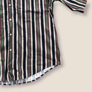 1990s VTG Natural Issue Vertical Striped Preppy Mandarin Collar Button Down