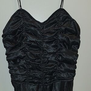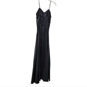 90s Victoria’s Secret Black Satin Ruched Vintage Maxi Gown Slip Dress M Prom