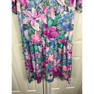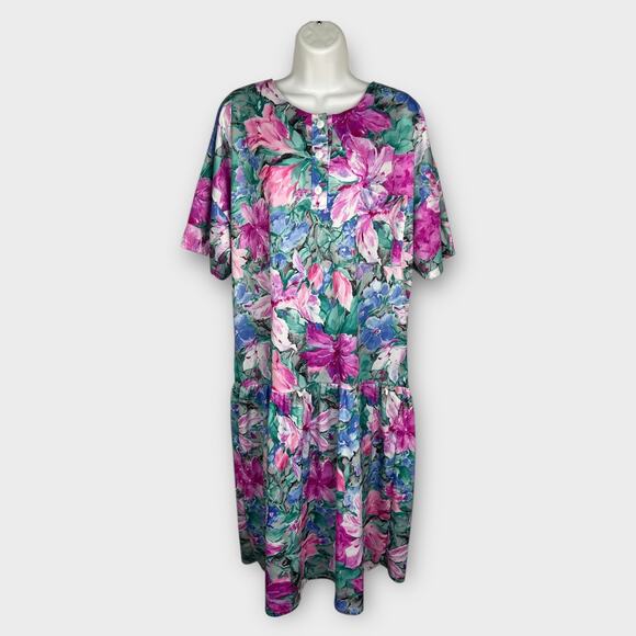 90s Village Flair Tropical Floral Drop Waist Nightgown House Dress Muu Muu XL