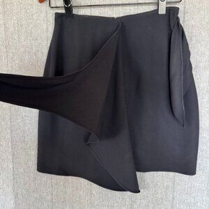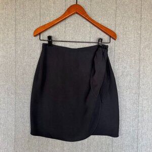 90s Vinatge DKNY Donna Karan New York Black Crepe Wrap Front Mini Skirt Size 6