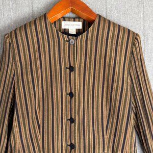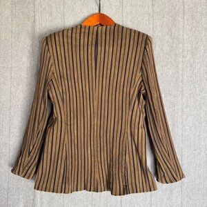 90s Vintage Jones New York Linen Blend Tan Blue Green Strip Collarless Blazer Size 10 / 12
