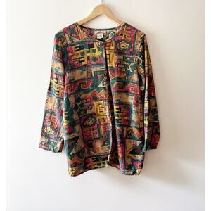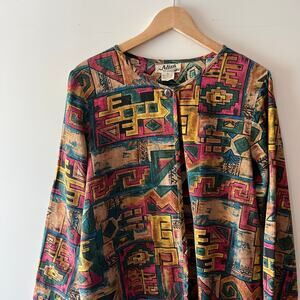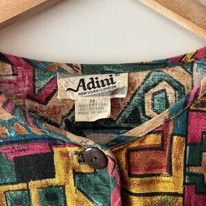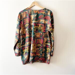 90s Vintage Adini Multi-Color Abstract Print Long Sleeve Tunic Medium