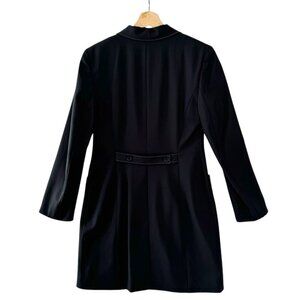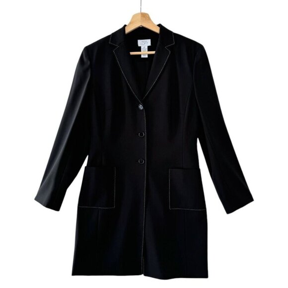 90s Vintage Ann Taylor Loft Wool Blend Black w/ Tan Contrast Stitch Long Blazer Size 6