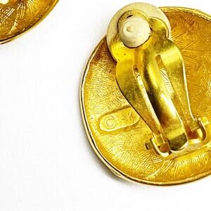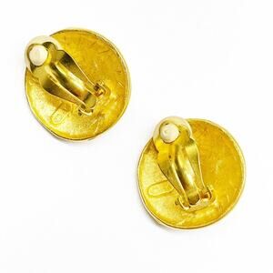 90's Vintage Anne Klein Brushed Gold Textured Clip Button Earrings