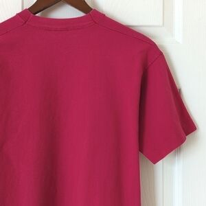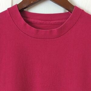 VTG and straight out of the 90s - This tee features short sleeves, a ribbed crewneck, and a classic, relaxed fit. It has a single stitch hem. It is hot pink in color with a faint design on the front that says Bar Harbor with a crest and a line of boats. It is very soft, lightweight, and comfortable. Pairs great with high rise mom jeans or shorts and sneakers for a go-to retro look. Super fun to add to a collection, perfect for the Summer! So different and unique!