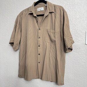 90’s Vintage Bill Blass Silks Silk Tan Short-Sleeve Button Down Shirt - Size L