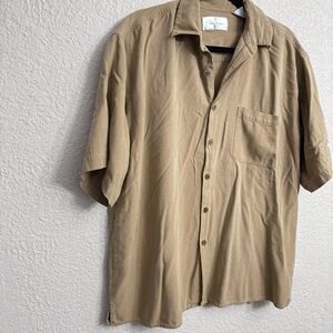 90’s Vintage Bill Blass Silks Silk Tan Short-Sleeve Button Down Shirt