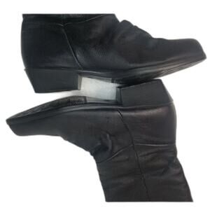 90s Vintage Black Leather Calf High Basic Editions Boots Almond Shape Toe Size 7