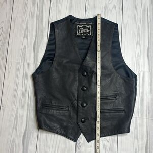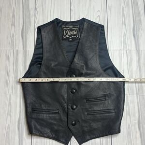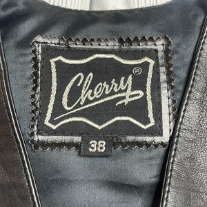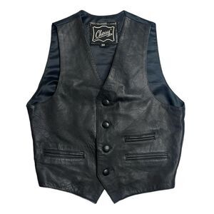 90s Vintage Black Leather Vest Top Button Front Size 38 Cherry Brand