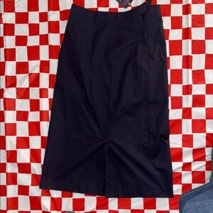 An incredibly rare, deadstock vintage Burberrys piece, made in London before the brand dropped the “s” in the late 1990s. This classic navy skirt features a sleek, structured silhouette and is new with original tags still attached — a true time capsule from British luxury fashion.