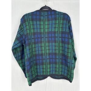 90s Vintage Cardigan Sweater Womens Large Blue Tartan Plaid Green Gold Buttons