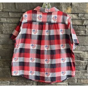 90s Vintage Collections Etc. Womens Plaid Shirt XL Hearts Flag Patriotic