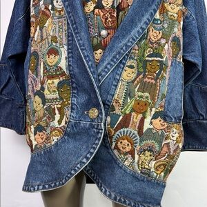 90s Vintage Denim Tapestry Jacket & Vest World Blue Jean 1980’s USA Nadia