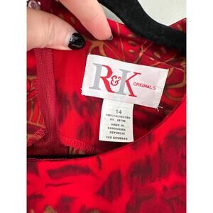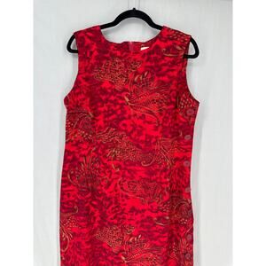 90s Vintage Dress Womens Large Red Maxi Black Brown Animal Print Grunge Artsy