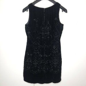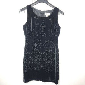 90s Vintage Embossed Velvet Dress Black Sleeveless