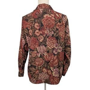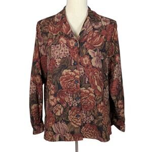 Keywords: vintage floral blouse, tapestry top, retro fall shirt, cottagecore clothing, boho vintage top, BonWorth floral button down, Thanksgiving