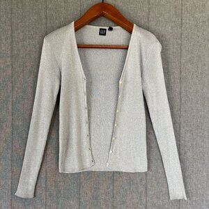 90s Vintage Gap Silver Metallic V Neck Button Up Ribbed Knit Cardigan Size M
