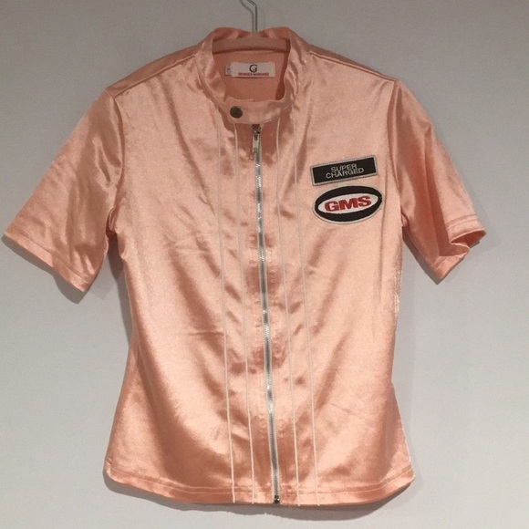 90’s Vintage Georges Marciano Pink stretchy satin short sleeve surf top