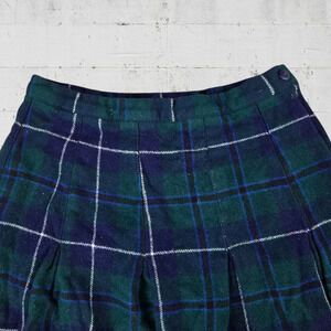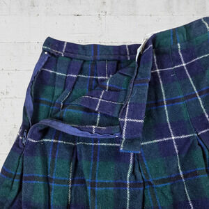90s Vintage Green Blue Tartan Plaid Wool USA Made High Rise Midi Skirt Size 8