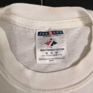 vintage Jerzees t shirt, 90s embroidered tee, cream retro basketball mom shirt, women’s medium graphic tee, Jerzees sports mom top, 90s cream embroidered logo, vintage casual streetwear, Y2K embroidered shirt, retro Jerzees tee