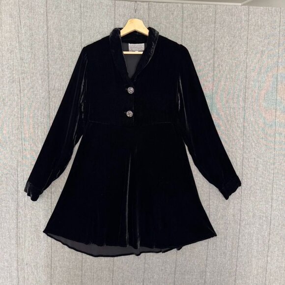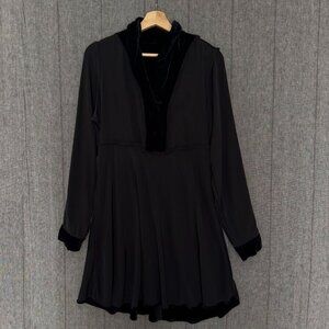 90s Vintage Kamellia by Desire Black Silk Blend Velvet Long Sleeve Mini Dress