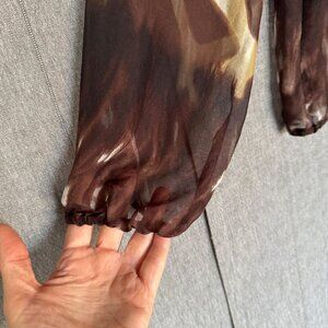90s Vintage Karen Kane 100% Silk Brown Giraffe Print Ballon Sleeve Blouse Size M