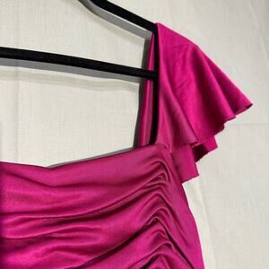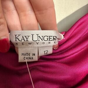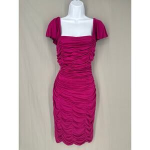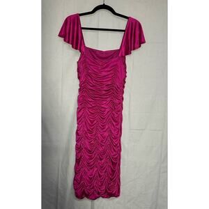 90s Vintage Kay Unger Dress Womens Medium Pink Midi Party Ruched Bodycon Stretch