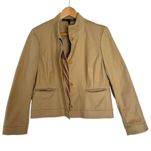 90s Vintage Linda Allard for Ellen Tracy Tan Mandarin Collar Blazer Size 12