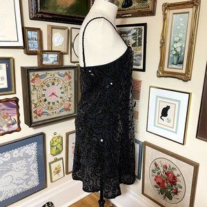 90s Vintage Liz Claiborne Black Crepe Sleeveless Slip Dress with Sequins Size 12