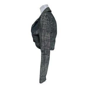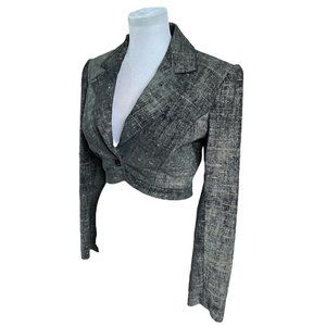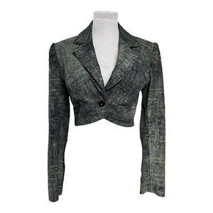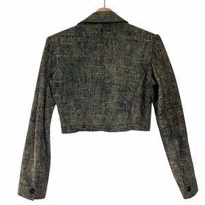 90s Vintage NYS Denim Effect 100% Genuine Leather Cropped Blazer Jacket Size 6