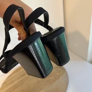 90s Vintage Nine West Dark Blue Chunky Stacked Heel Strapped Heels Size 8