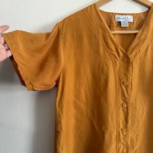 90's Vintage OSCAR de la RENTA | Deep Mustard Silk Baseball Style Shirt