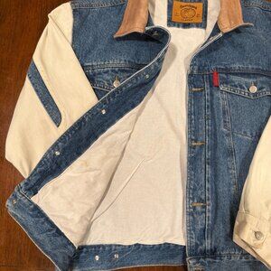 Blue denim body with cream sleeves