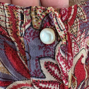 90s Vintage Papillon Tan Terracotta Paisley Print Pearl Button Rayon Tunic Top Size M