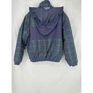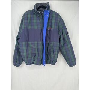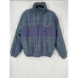 90s Vintage Ralph Lauren Jacket Mens Medium Blue Plaid Down Green Full Zip Hood