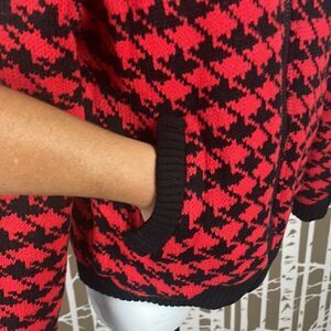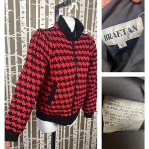 90s Vintage Red Black Houndstooth Sweater Knit Reversible Bomber Jacket