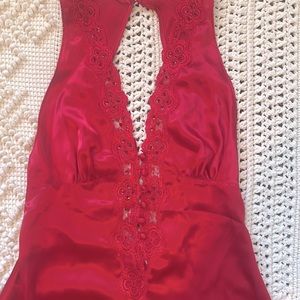 90s Vintage Red Satin Full Length Gold Tag Victoria’s Secret Nightgown
