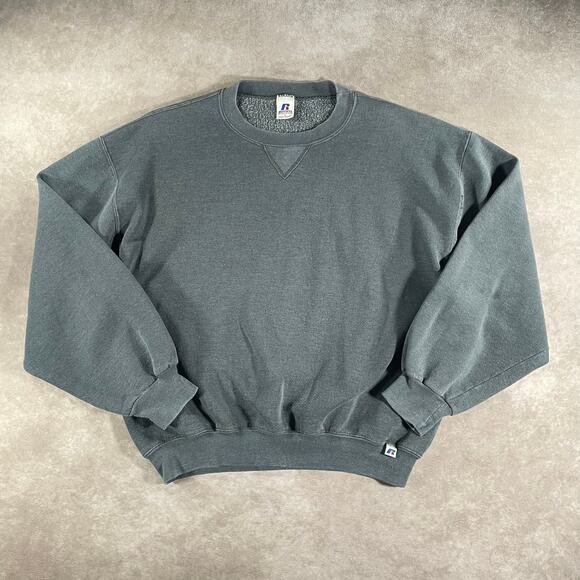 90’s Vintage Russell Athletic Logo Patch Grey Blue Blank Cozy Soft Sweatshirt