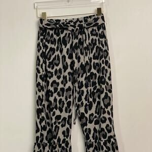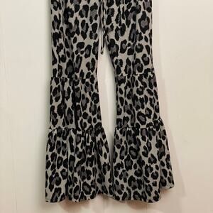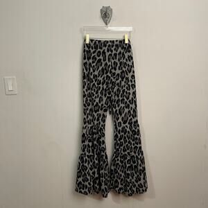 90s Vintage S/M cheetah print flare bell bottoms Y2K black gray pant belt party