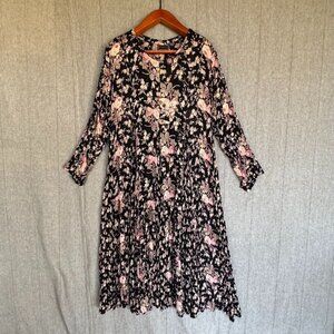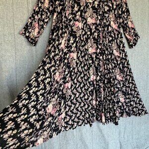 90s Vintage STARINA Black Pink Sage Green Moody Floral Long Sleeve MaxI Dress Size Medium