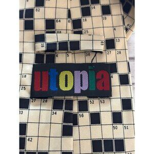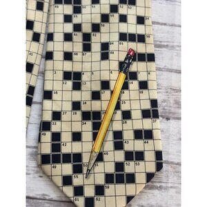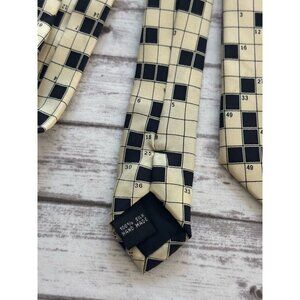 90s Vintage Silk Mens Neck Tie Black And White Crossword Puzzle Utopia