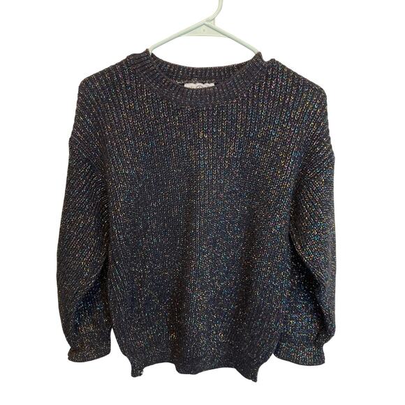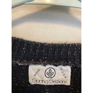 90's Vintage Spring Seasons Black Metallic Long Sleeve Crewneck Sweater S/M
