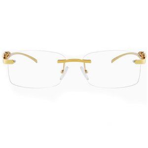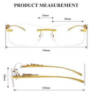 Gold Wire Metal Frames Vintage Small Rimless Square Unisex Trendy 90’s Hip Hop Retro Luxury Leopard Arms Frameless Glasses Rectangle Designer Narrow Clear Lens Eye Glasses For Men And Women.