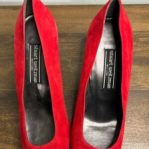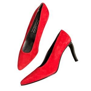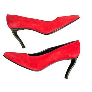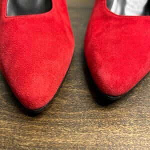 90s Vintage Stuart Weitzman Heels Cherry Red Suede Leather Pumps Pointed Toe 9.5